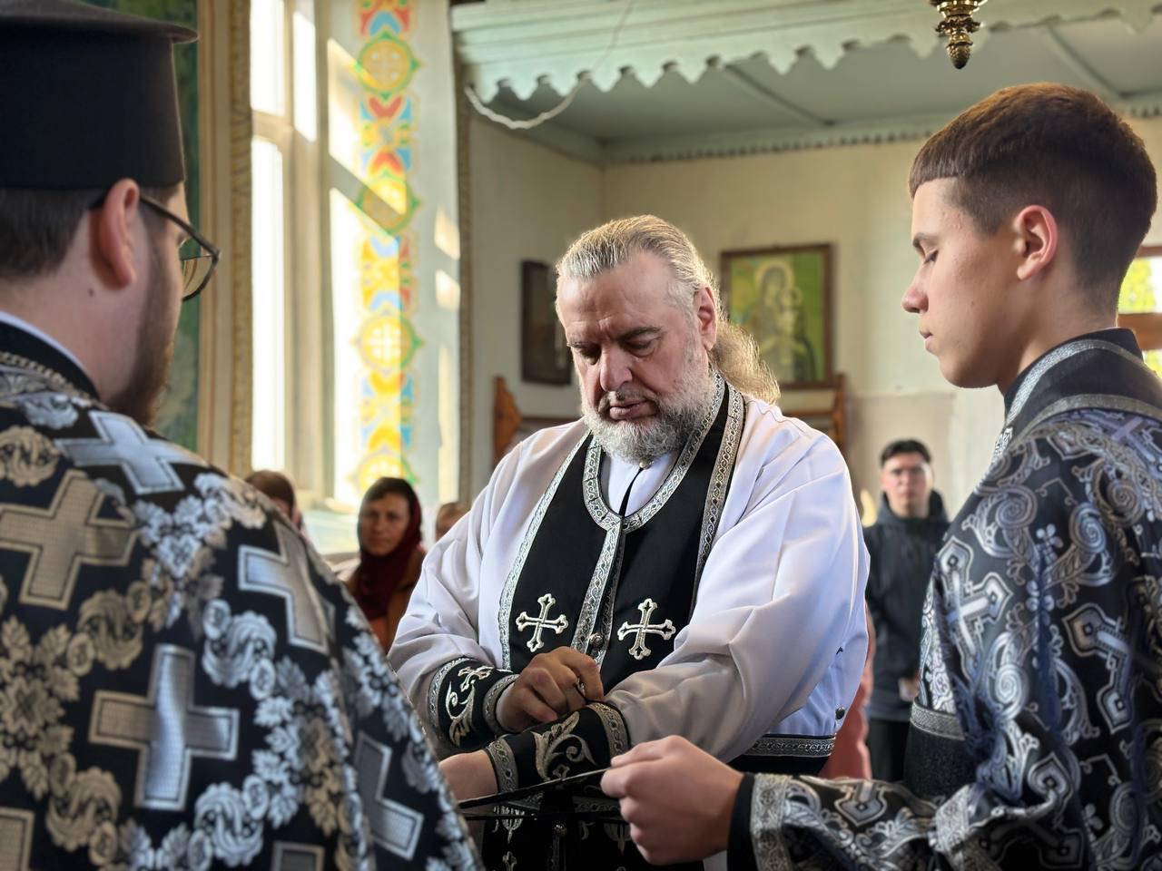 🔹Разом з керуючим Хмельницькою єпархією молились благочинний Старосинявського округу, настоятель Свято-Миколаївського храму селища Меджибіж протоієрей Петро Леськів, благочинний Деражнянського округу протоієрей Петро Байда, духовенство обох благочинь та гості у священному сані.
