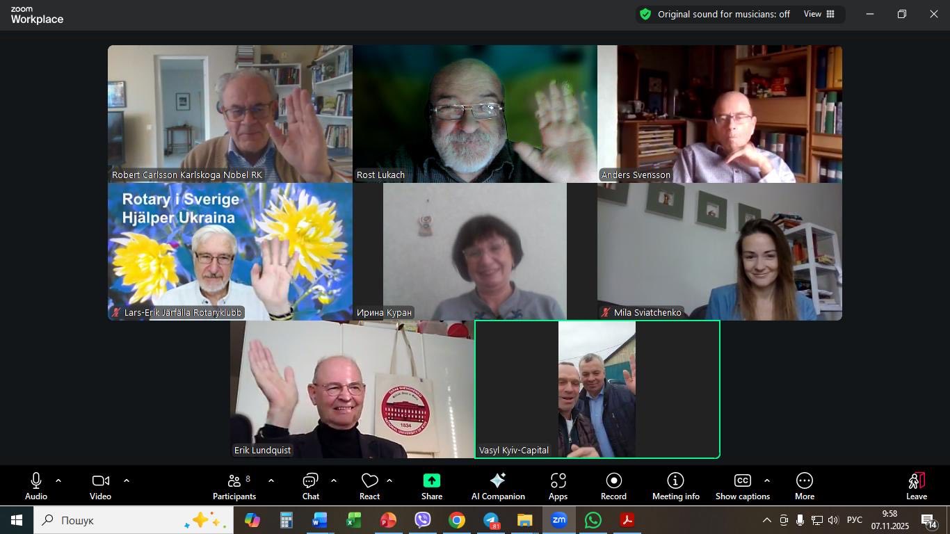 Підтримка з боку Rotary Club “Київ Столиця” є надзвичайно цінною, адже вона не обмежується лише матеріальною допомогою. Особливо значущими є щотижневі зустрічі у форматі Zoom зі шведськими ротарійцями. Ці онлайн-заходи стали платформою для щирого діалогу, глибокого взаєморозуміння та демонстрації справжньої міжнародної солідарності. Наші шведські партнери уважно вивчають виклики, з якими стикається Україна, уважно слухають та активно шукають шляхи допомоги. Ми високо цінуємо їхню дружбу, довіру та відкритість, які виявляються у кожному жесті підтримки.