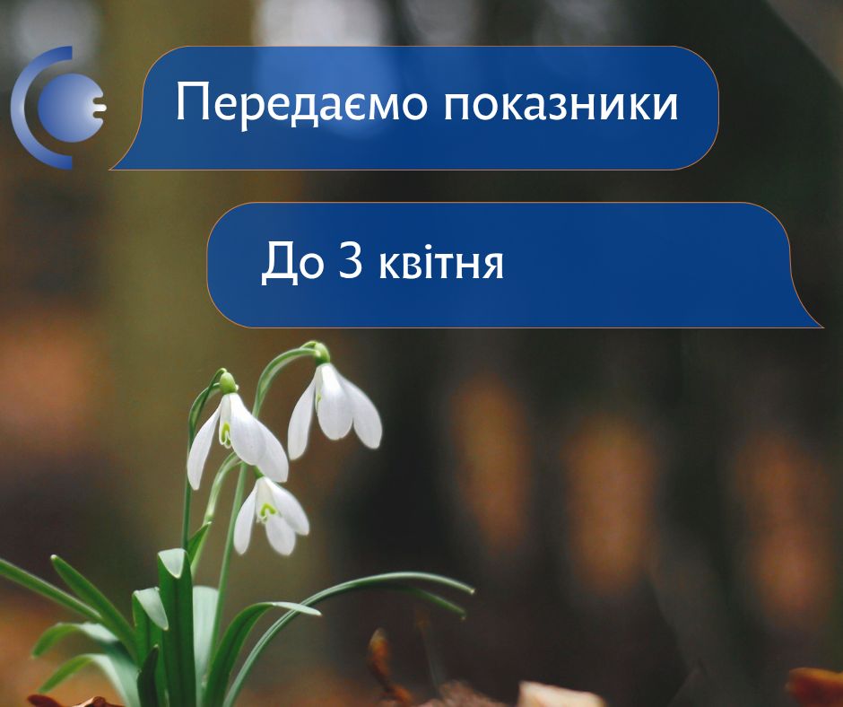📅 Від сьогодні, 21 березня, і до 3 квітня включно, триває період для передачі показників ваших приладів обліку електроенергії. Скористайтеся цим часом, щоб ваш рахунок за світло був максимально точним.