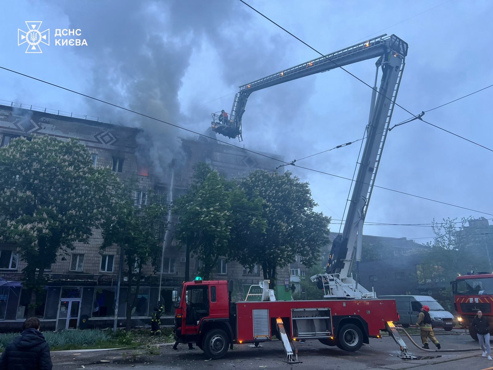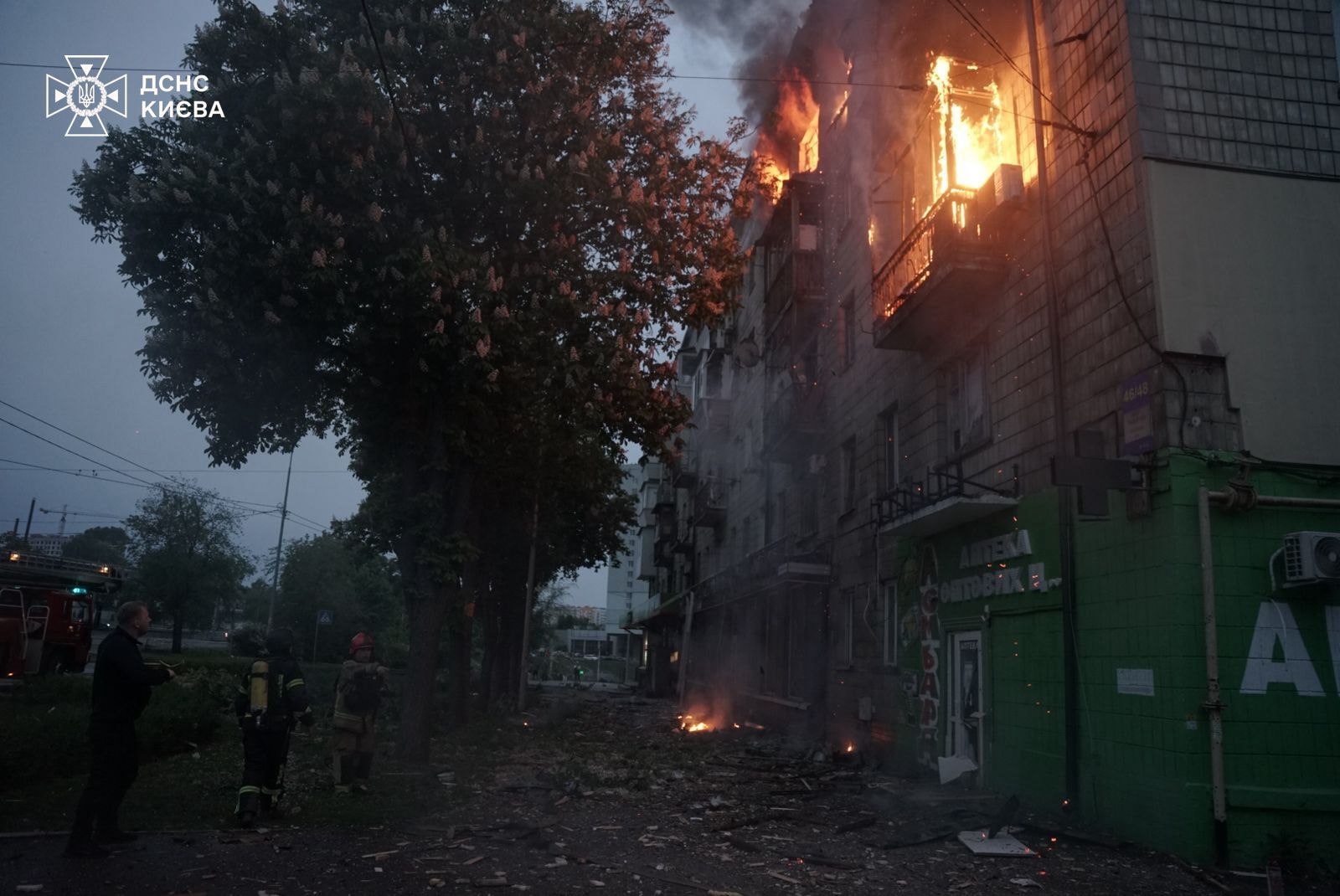 ▪️Шевченківський район: У Шевченківському районі уламки БпЛА впали на п’ятиповерховий житловий будинок. Загоряння виникло у квартирах на 3-му та 5-му поверхах. Під час гасіння пожежі виявлено тіла двох загиблих. Пожежу ліквідовано. Рятувальники продовжують працювати на місці, збираючи інформацію та ліквідовуючи наслідки.