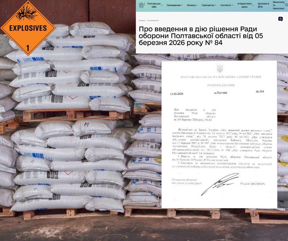 Шановні продавці, власники магазинів та покупці! Доводимо до Вашого відома наступну важливу інформацію щодо купівлі певних видів добрив та хімічних компонентів. Згідно з розпорядженням начальника Полтавської обласної військової адміністрації Віталія ДЯКІВНИЧА від 13.03.2026 № 334 «Про введення в дію рішення Ради оборони Полтавської області від 05 березня 2026 року № 84», запроваджено особливі умови продажу деяких товарів. Це рішення Ради оборони Полтавської області (РОПО) спрямоване на забезпечення оборони України, захисту безпеки населення та інтересів держави в умовах воєнного стану. Посилання на офіційний документ: https://poda.gov.ua/documents/257181.