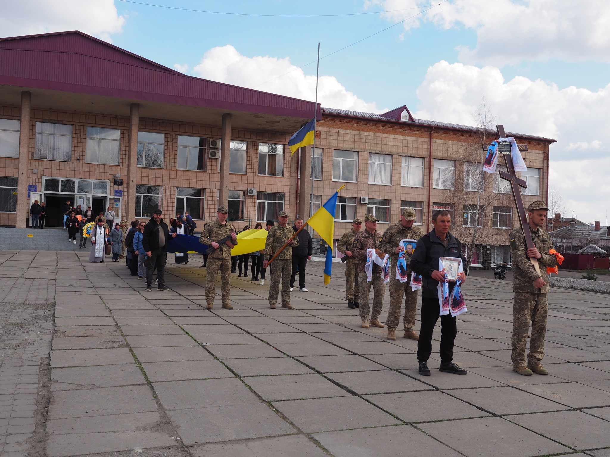 З глибокою скорботою та невимовною тугою громада провела в останню путь нашого земляка, Героя Олексія Шевчука. Вчора його тіло було зустрінуте «на щиті», а сьогодні, схиливши голови перед його подвигом, ми востаннє попрощалися із Захисником України.
