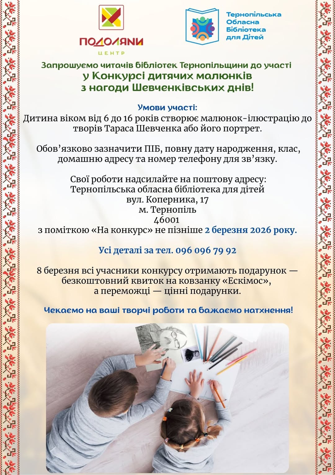 Запрошуємо юних талантів взяти участь у захопливому конкурсі дитячих малюнків, присвяченому величним Шевченківським дням. Це чудова нагода для вашої дитини проявити свої мистецькі здібності та вшанувати пам’ять видатного українського поета. Організатори конкурсу дитячих малюнків заохочують усіх дітей до творчості, адже саме через мистецтво наймолодші можуть найкраще висловити свої почуття та бачення світу.