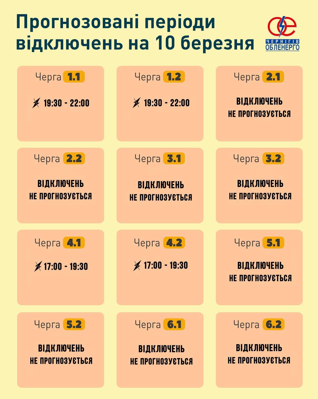 📅⚡️ Прогнозовані відключення на 10 березня