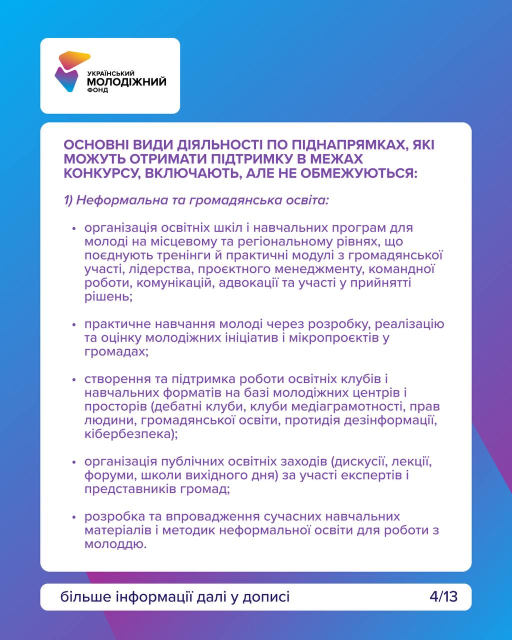 - Розвиток молодіжних просторів.
