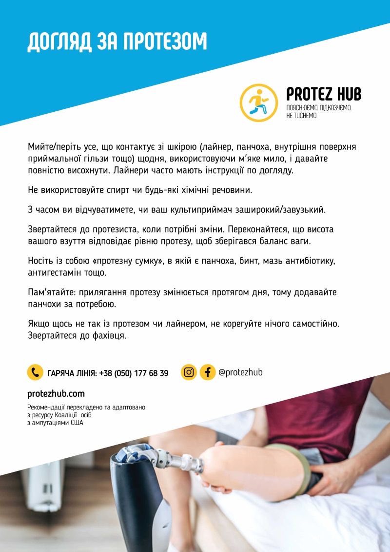 🔹 Яких правил догляду слід дотримуватися за куксою, шкірою та самим протезом для його довговічності.