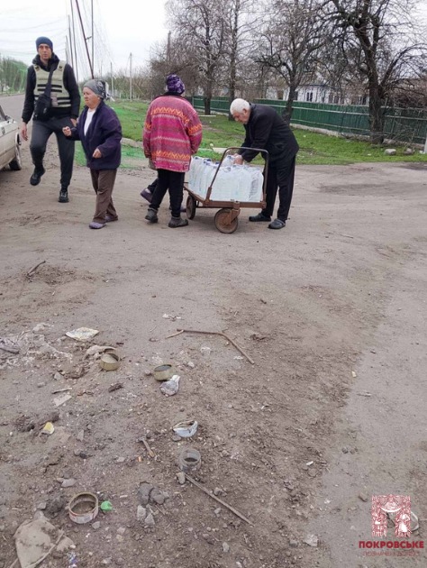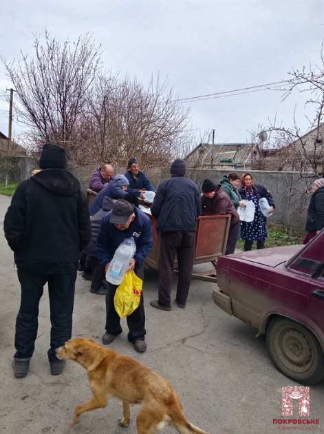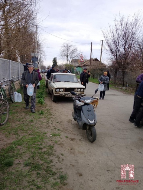 Працівниками Покровської селищної ради продовжується видача питної води для жителів селища Покровське, які залишаються проживати у складних життєвих умовах на території активних бойових дій.