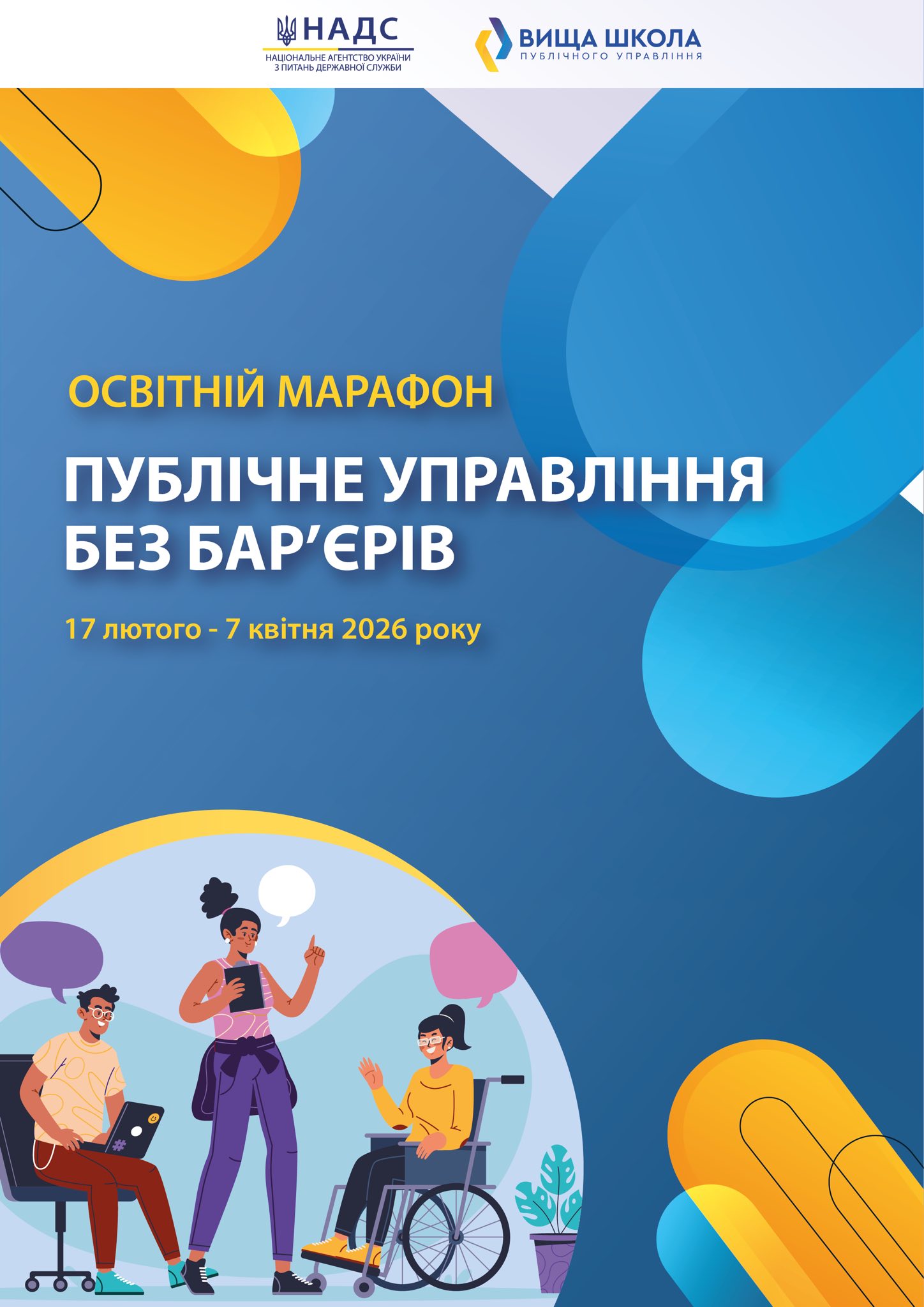 У відповідь на цю важливу потребу, Національне агентство України з питань державної служби (НАДС) спільно з Вищою школою публічного управління започатковують ОСВІТНІЙ МАРАФОН «ПУБЛІЧНЕ УПРАВЛІННЯ БЕЗ БАРʼЄРІВ». Цей онлайн-захід триватиме з 17 лютого по 07 квітня 2026 року, надаючи унікальну можливість для професійного зростання👩💻🧑💻.