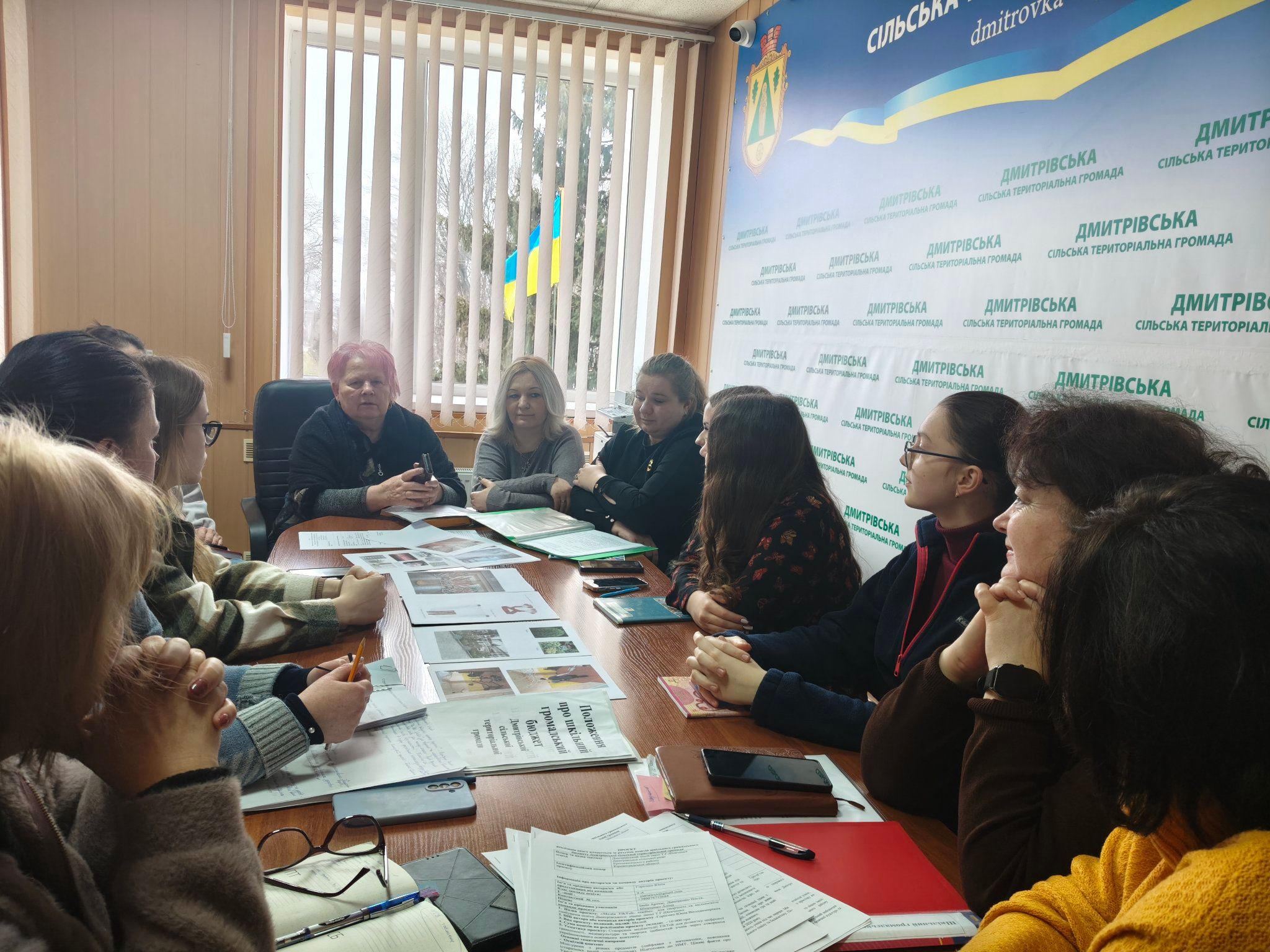 Сьогодні відбулося важливе засідання робочої групи, присвячене реалізації ініціатив у межах Шкільного громадського бюджету. Ця ініціатива відкриває нові можливості для молоді, дозволяючи їм безпосередньо впливати на розвиток свого навчального закладу. Захід пройшов за активної участі Дмитрівського сільського голови Наталії Стиркуль, а також представників відділу освіти, фінансового та економічного відділів, відділу культури. Також були присутні представники адміністрації Дмитрівського ліцею імені Т. Г. Шевченка та активні представники учнівського самоврядування, що підкреслює важливість співпраці між усіма зацікавленими сторонами.