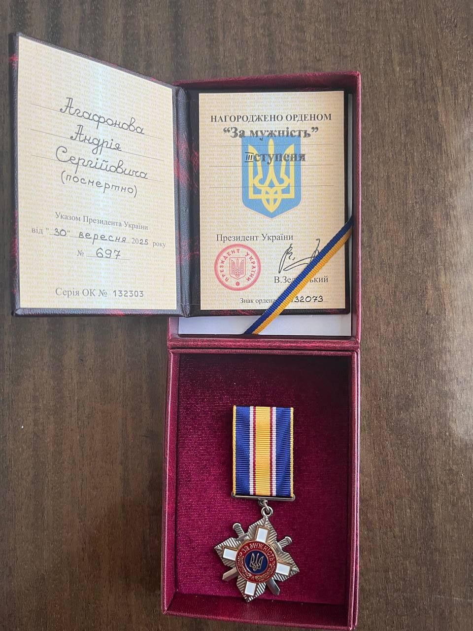 Нагородження Героя Андрія Агафонова Орденом «За мужність»