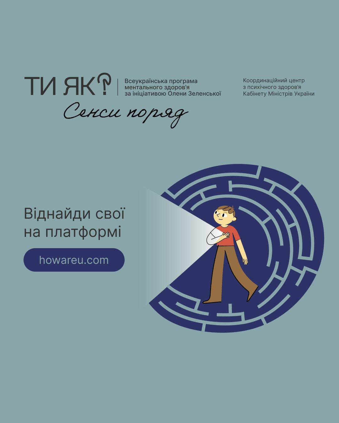 В Україні Місяць обізнаності про ментальне здоров’я пройде під закликом віднайти свої сенси, які у часи випробувань працюють як внутрішні опори: «Ти як? Сенси поряд. Віднайди свої на платформі howareu.com».