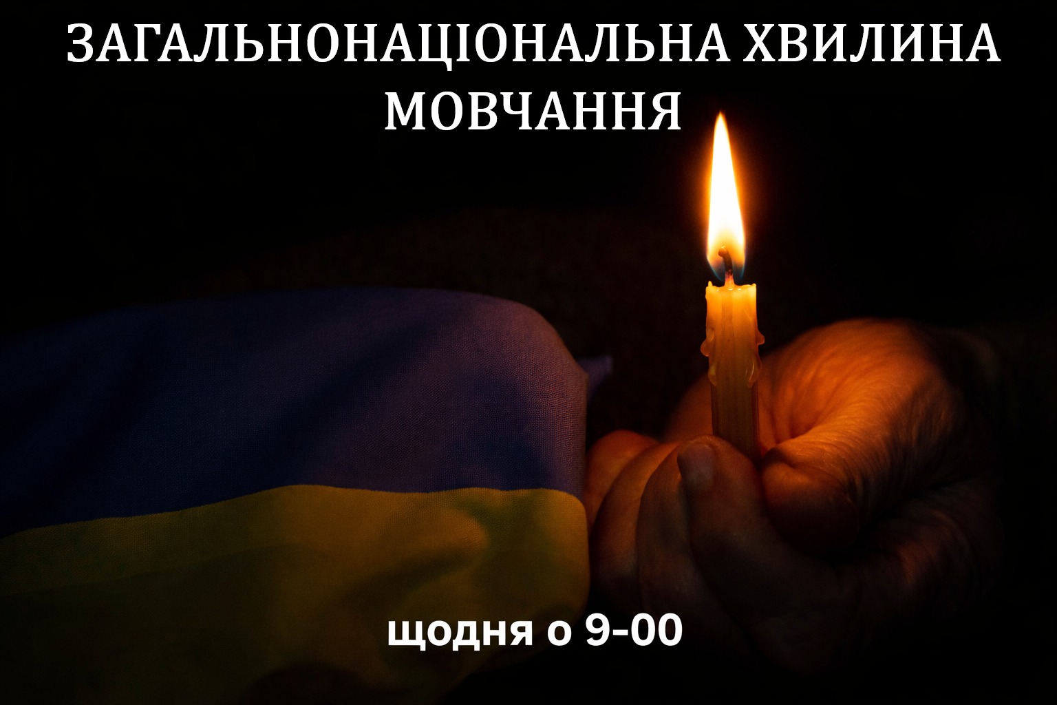 Щоранку о 09:00 год. в Україні проводиться загальнонаціональна хвилина мовчання за загиблими у війні українцями!