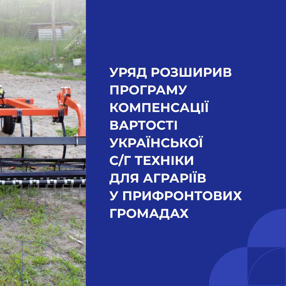 🚜🇺🇦 Уряд розширив програму компенсації вартості української сільгосптехніки для аграріїв у прифронтових громадах