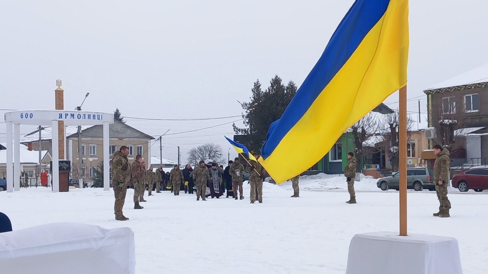 У рідній громаді воїна зустрічали з усіма належними почестями. Люди ставали навколішки, утворюючи живий коридор, віддаючи шану Герою, який пожертвував власним життям заради захисту України. Чин панахиди на центральній площі селища Ярмолинці звершили священники Ярмолинецького округу ПЦУ. Співчуття рідним від імені усіх земляків висловив заступник Ярмолинецького селищного голови Іван Березовський.