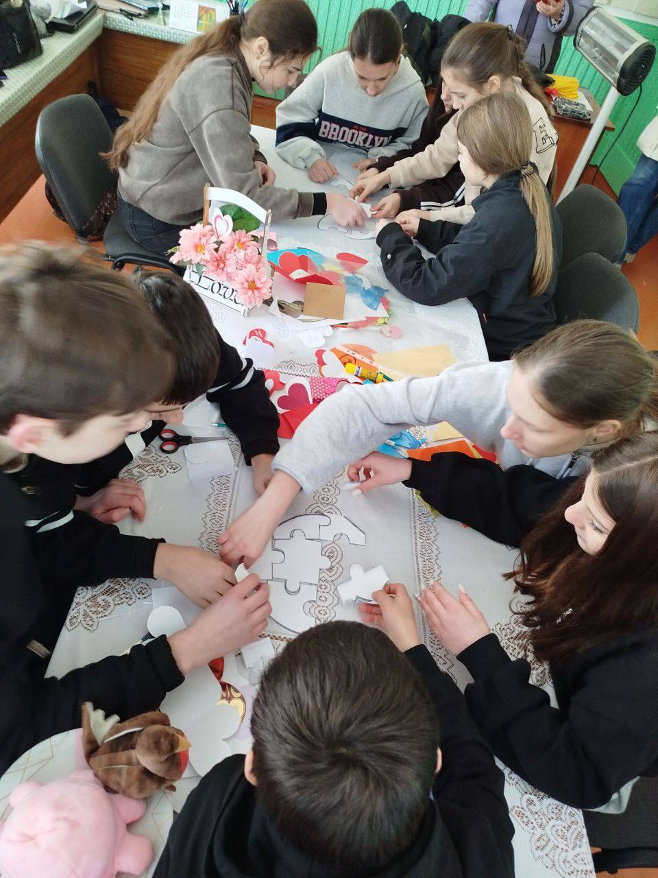 Маленькі учасники з ентузіазмом взялися до роботи, створюючи власні унікальні листівки у формі серця. Це був не просто творчий процес, а справжня школа емоцій, де діти вчилися висловлювати найщиріші почуття: дружбу, повагу, прихильність та, звичайно ж, любов до своїх близьких. Окрім майстер-класу, на дітей чекали веселі конкурси та ігри, що подарували незабутні емоції та створили атмосферу справжнього свята.