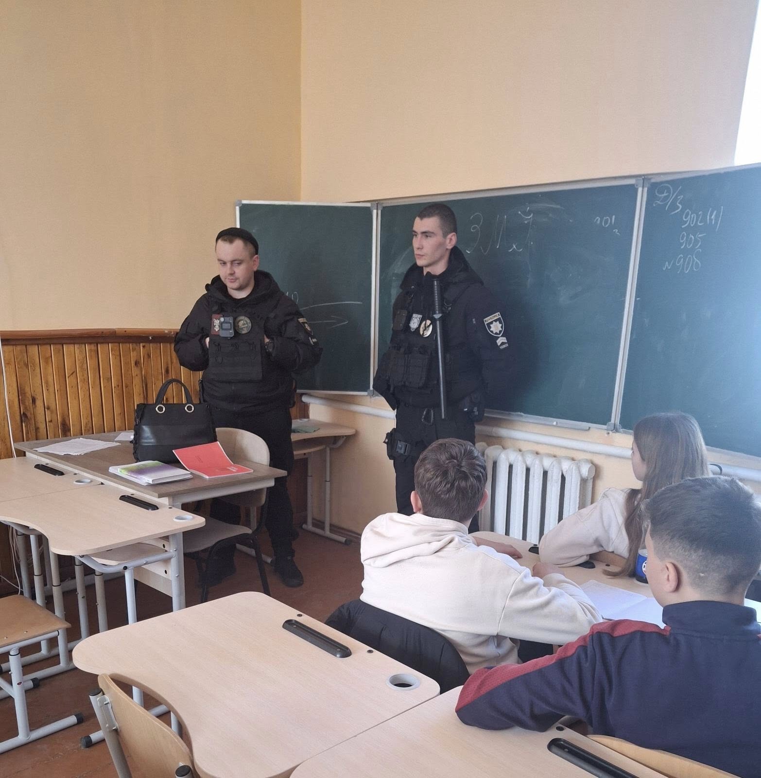 Були розглянуті актуальні рекомендації для пішоходів і велосипедистів щодо їхньої поведінки на тротуарах, велодоріжках та проїзній частині. Поліцейські також роз’яснили юридичні аспекти, наголосивши на відповідальності, яка настає за порушення правил дорожнього руху, як для неповнолітніх, так і для їхніх батьків. Учні з великою зацікавленістю долучалися до обговорення. Вони активно ставили запитання, ділилися власним досвідом та разом з правоохоронцями розбирали реальні життєві ситуації, що виникають на дорогах. Така інтерактивна форма роботи сприяла кращому засвоєнню матеріалу та формуванню свідомого ставлення до безпеки.