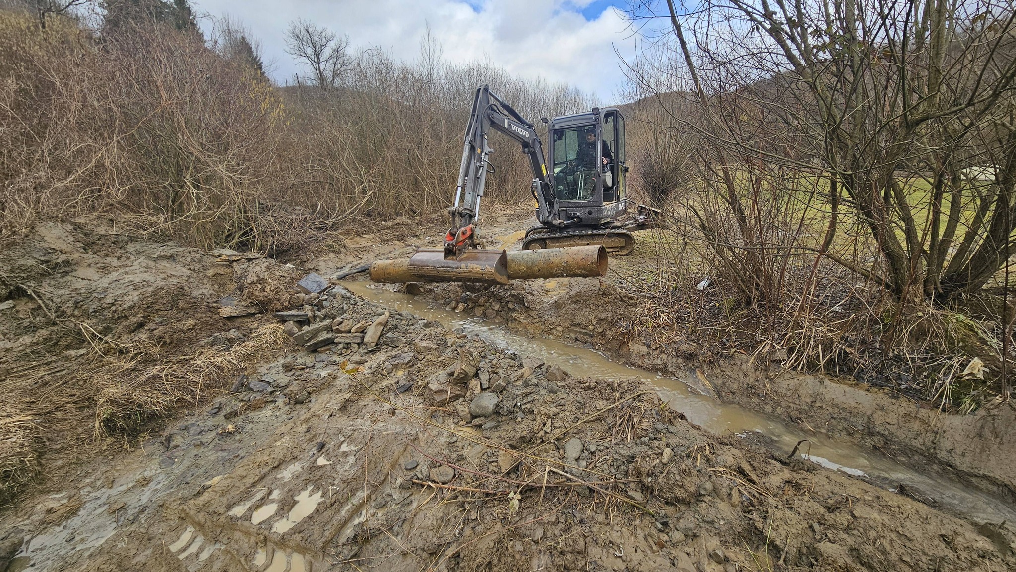 ✅ Для забезпечення належного водопропуску було відновлено та очищено трубу під дорогою. Цей захід є критично важливим для запобігання підтопленню та забезпечення вільного відтоку води.