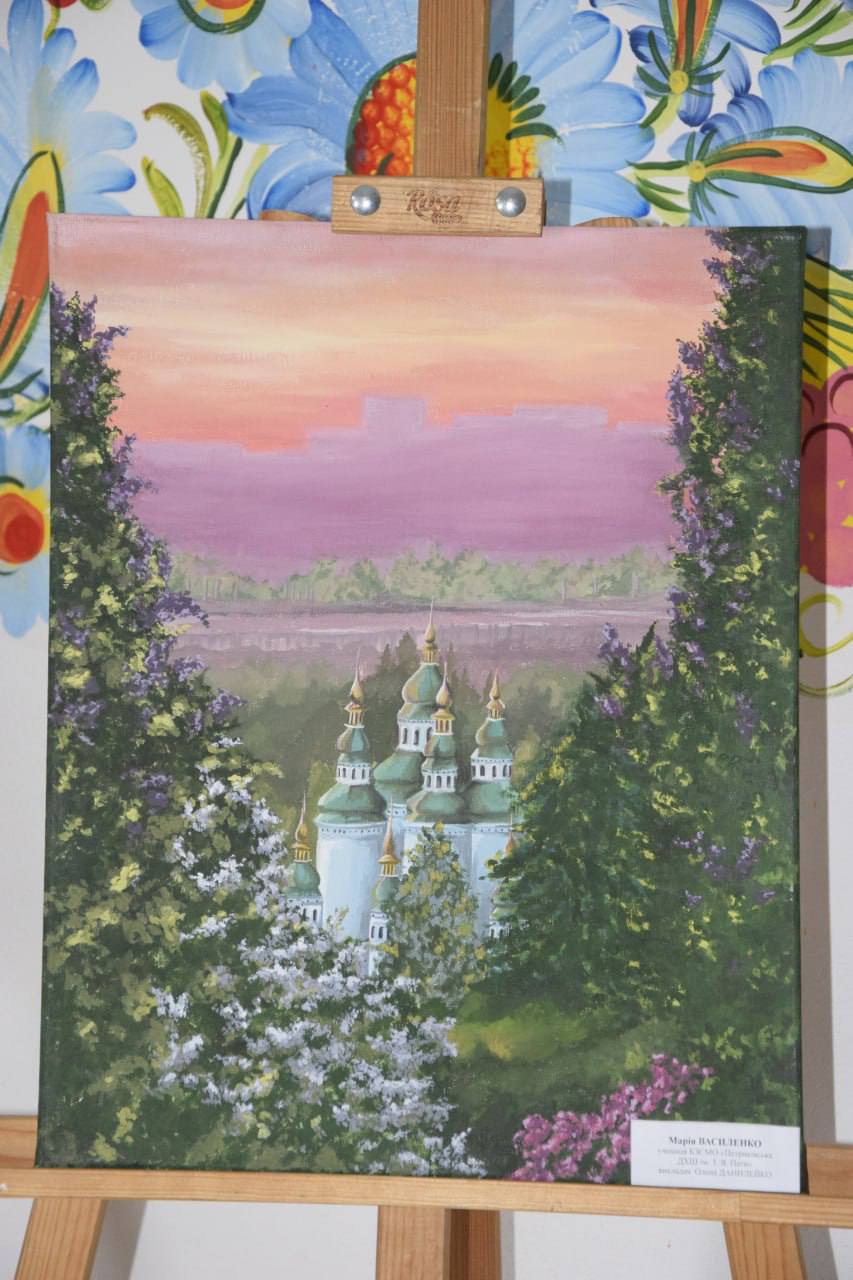 Особливу увагу привертають роботи юних художниць: Анни Грунистої, Софії Сидоренко, Софії Медвідь та Марії Василенко. Під керівництвом талановитого викладача Олени Данилейко, дівчата створили дивовижні шедеври, що вражають глибиною образів та сміливістю кольорових рішень. У кожному творі відчувається нестримна енергія творчого пошуку: космічні барви переплітаються з автентичними українськими мотивами, створюючи неповторну атмосферу, де безмежна дитяча фантазія органічно поєднується з національною ідентичністю.