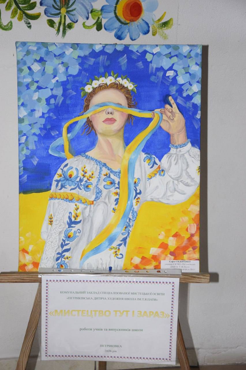 У холі Петриківської селищної ради відкрилася оновлена виставка творчих робіт учнів дитячої художньої школи ім. Т.Я. Пати. Цей простір наповнився яскравими емоціями та невичерпним натхненням юних талантів. Представлене мистецтво гармонійно поєднує глибокі традиції українського народного мистецтва та унікальне індивідуальне бачення світу кожної дитини.