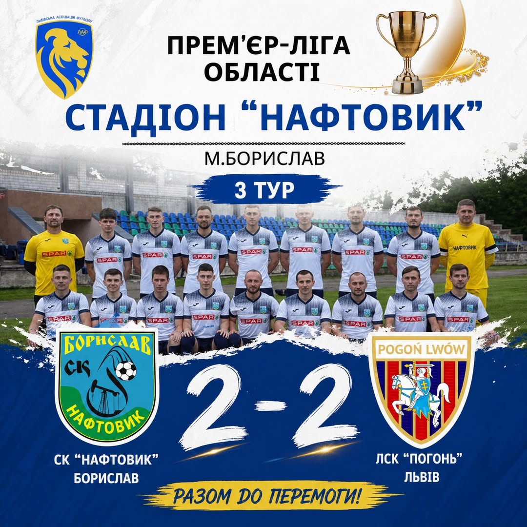 🏟 В неділю, 26 квітня, у Бориславі на стадіоні «Нафтовик» відбувся матч 3-го туру Прем’єр-ліги області з футболу. СК «Нафтовик» приймав львівську команду ЛСК «Погонь».