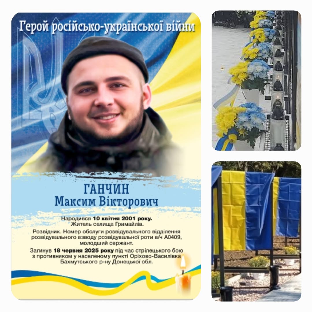 20 лютого, о 12:00, ми запрошуємо вас відвідати урочисту церемонію освячення пам’ятного банера нашого відважного захисника Максима Ганчина. Ця подія відбудеться на Алеї Слави Гримайлівської громади. У цей знаменний день ми вшануємо світлу пам’ять та героїчний подвиг усіх, хто поклав своє життя заради свободи та незалежності України. Ми об’єднаємося у спільній молитві за перемогу та за безпеку тих, хто зараз мужньо боронить нашу Батьківщину на передовій. Закликаємо всіх небайдужих долучитися до цієї надзвичайно важливої події. Ваша присутність стане виразом глибокої вдячності та непохитної підтримки нашим Героям. Нехай наша спільна молитва стане потужним символом єдності українського народу та непохитної віри в нашу неминучу перемогу. Слава нашим Героям! Вічна пам’ять загиблим захисникам України!