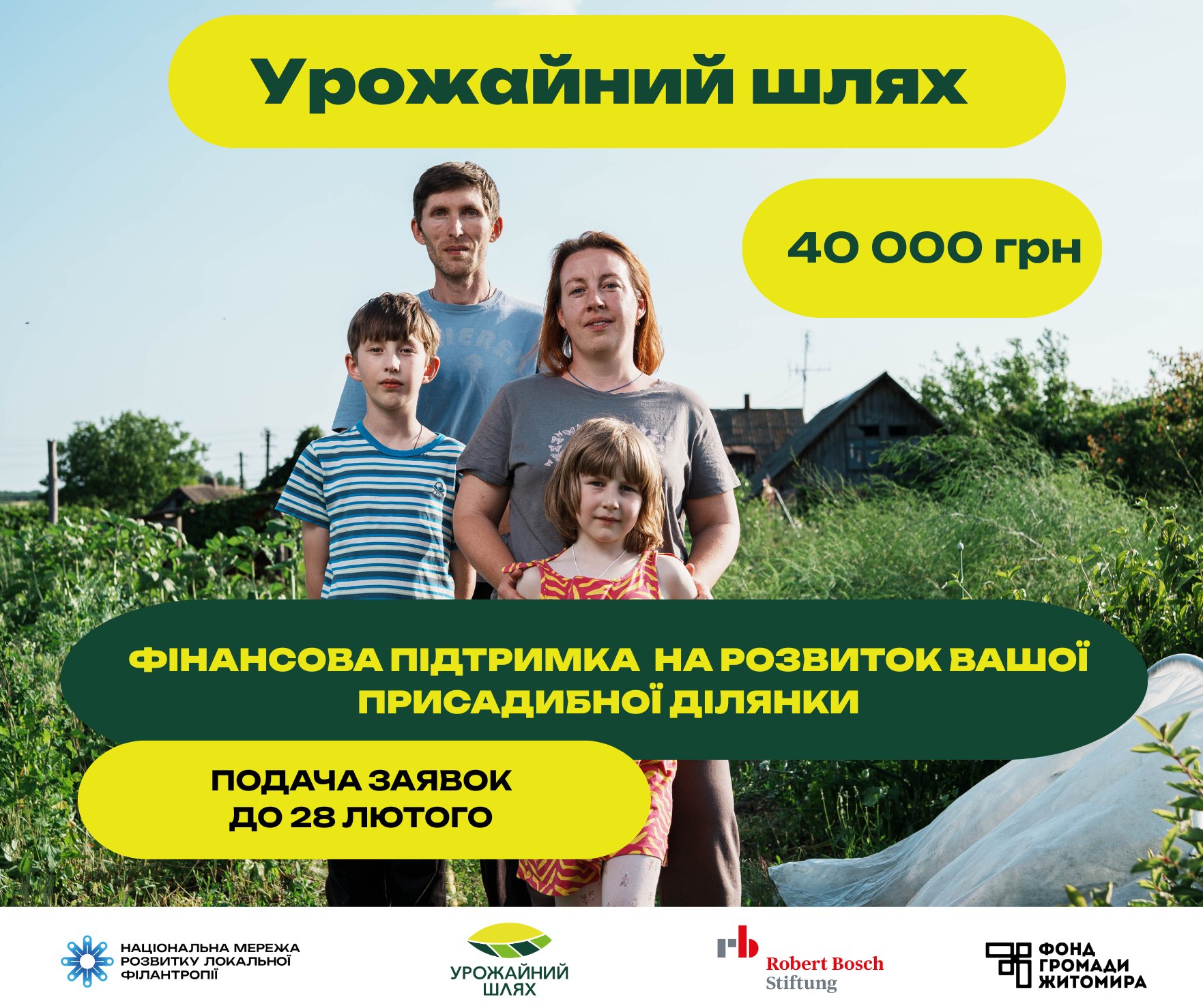 З радістю повідомляємо про старт прийому заявок на участь у благодійному агропроєкті «Урожайний шлях». Ця важлива ініціатива реалізується Національною мережею розвитку локальної філантропії у співпраці з Robert Bosch Stiftung на базі місцевого фонду, надаючи унікальну можливість для розвитку вашого господарства. Основна мета проєкту — це зміцнення продовольчої безпеки та надання необхідної підтримки домогосподарствам нашої громади, шляхом надання фінансової допомоги для розвитку власного господарства.