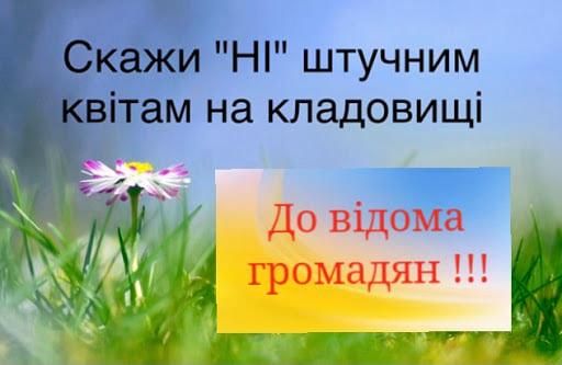 З метою збереження чистоти громади та охорони довкілля закликаємо відмовитися від придбання та використання штучних квітів. Надавайте перевагу живим квітам або екологічним альтернативам, що є безпечними для природи та людей.