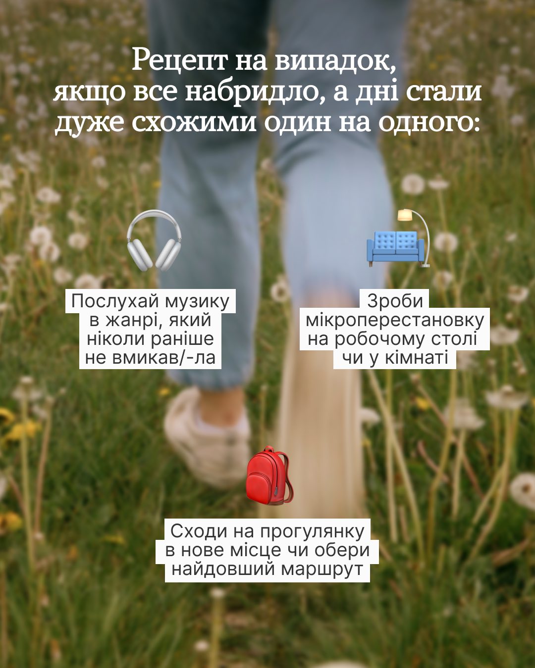 👂 Щоби насправді відпочити, важливо прислухатися до себе і вчасно відновлювати ті ресурси, які вже було витрачено.