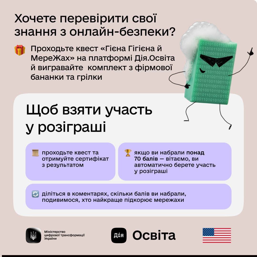 Як почуватися в інтернеті впевнено й безпечно? Так само, як і в реальному житті, — дотримуючись щоденної гігієни. Про це нагадує Гієна Гігієна до Дня безпечного інтернету🛡️. У сучасному цифровому світі кібергігієна стає невід’ємною частиною нашого повсякдення. Це комплекс заходів, спрямованих на захист особистої інформації, фінансових даних та запобігання кіберзлочинам. Навіть у найбезпечніших онлайн-середовищах, такі як популярні геймінг-платформи, шахраї можуть спробувати скористатися довірою. Наприклад, друг з ігрової платформи може надіслати повідомлення з лікарні, терміново просячи гроші. У таких випадках першим кроком має бути перевірка особистості. Самозванці часто використовують імена реальних контактів, але зводять нанівець усі запобіжні заходи. Іншим поширеним методом є маскування під офіційні установи. Бот банку з ніком Bank123 — це червоний прапорець, що сигналізує про необхідність зупинитися і ретельно перевірити автентичність акаунту. Банки ніколи не запитують конфіденційну інформацію через автоматизовані повідомлення. Також слід бути обережними з продавцями на торгових платформах, які пропонують перевести спілкування поза межі сайту. Це може бути спробою уникнути системи безпеки платформи та виманити ваші кошти або особисту інформацію. День безпечного інтернету підкреслює: інтернет надає безліч можливостей, але без належної кібергігієни він легко перетворюється на зону ризику. Шахраї постійно винаходять нові схеми, активно використовуючи штучний інтелект (ШІ) для створення переконливих фішингових атак та діпфейків. Тому навіть досвідченим користувачам критично важливо регулярно «чистити зуби» своєї кібергігієни, оновлюючи знання та застосовуючи нові методи захисту. Портал «Дія.Освіта» зібрав низку освітніх продуктів, які допоможуть зробити онлайн-безпеку природною звичкою. Ці ресурси пропонують корисні поради та інструменти для підвищення рівня обізнаності щодо цифрової безпеки. Шукайте та зберігайте інформацію з каруселі, щоб бути в курсі останніх тенденцій у сфері кібербезпеки. 🎁 Додатково, до Дня безпечного інтернету, портал «Дія.Освіта» спільно з Гієною Гігієни та Кібермилом запрошує взяти участь у цікавому квесті. Усі, хто подолає поріг у половину можливих балів, автоматично стають учасниками розіграшу ексклюзивних брендованих бананок та теплих грілок. Квест доступний за посиланням, яке зазвичай розміщується у шапці профілю. Пам’ятайте, що онлайн-захист ефективний лише тоді, коли він є регулярним процесом. Тому дайте собі чесну відповідь: чи вже ви на боці Гієни Гігієни, дбаючи про свою цифрову безпеку?