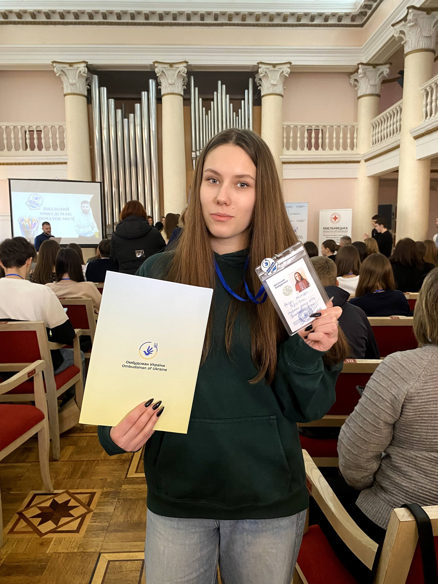 Я, Вікторія Байда, з гордістю несу звання Шкільного Омбудсмана! 👩🎓 Це почесна місія, яку я офіційно розпочала 20 лютого, склавши присягу під час правозахисної конференції «ШКІЛЬНИЙ ОМБУДСМАН. ПОЧАТОК МІСІЇ», що відбулася у місті Хмельницькому 🏨.