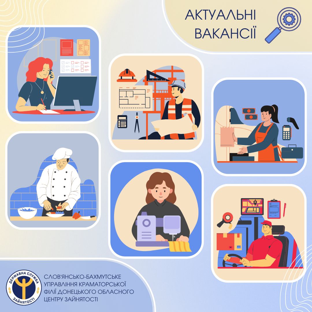 Інформуємо про актуальні вакансії від Слов’янсько-Бахмутського управління Краматорської філії Донецького обласного центру зайнятості станом на 01.05.2025.
