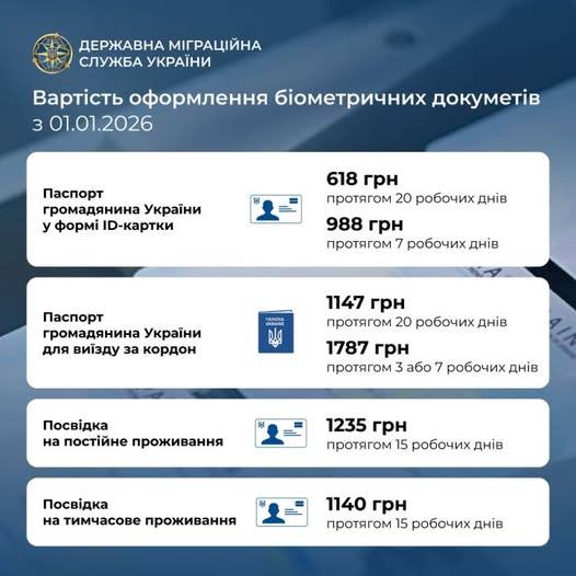 Із 1 січня 2026 року ДП Поліграфічний комбінат “Україна” змінило вартість бланків окремих біометричних документів.