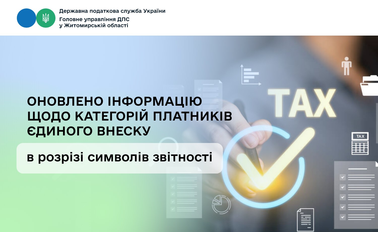 З метою уточнення символів звітності, за якими необхідно сплачувати єдиний внесок, відповідно до чинної редакції постанови Кабінету Міністрів України від 26 листопада 2014 р. № 675 «Про затвердження пропорцій розподілу єдиного внеску на загальнообов’язкове державне соціальне страхування» та з урахуванням наказу Державної казначейської служби України від 08.12.2025 № 301 «Про внесення змін до Довідника відповідності символу звітності пропорціям розподілу єдиного внеску на загальнообов’язкове державне соціальне страхування» у «Реквізитах рахунків для сплати єдиного внеску на загальнообов’язкове державне соціальне страхування» оновлено інформацію щодо категорій платників єдиного внеску в розрізі символів звітності.