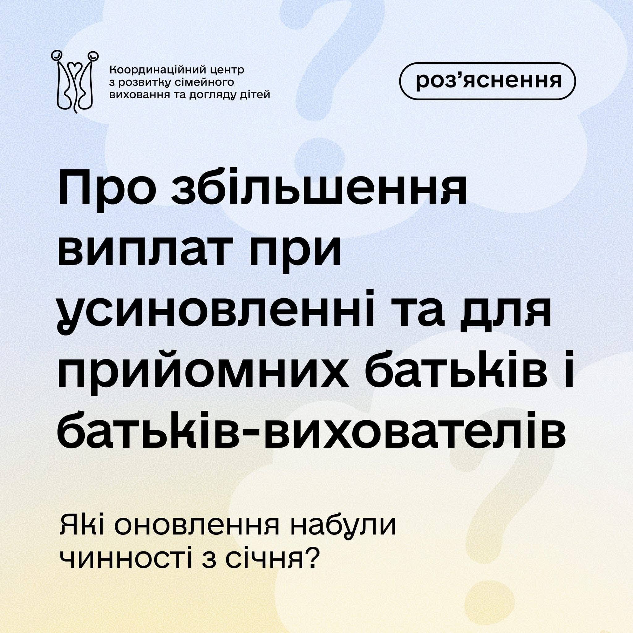 Із 1 січня 2026 року держава перейшла на нову систему розрахунку грошового забезпечення для прийомних батьків і батьків-вихователів. Грошове забезпечення у підвищеному розмірі виплачуватиметься сімʼї, незалежно від того, коли вона була утворена.