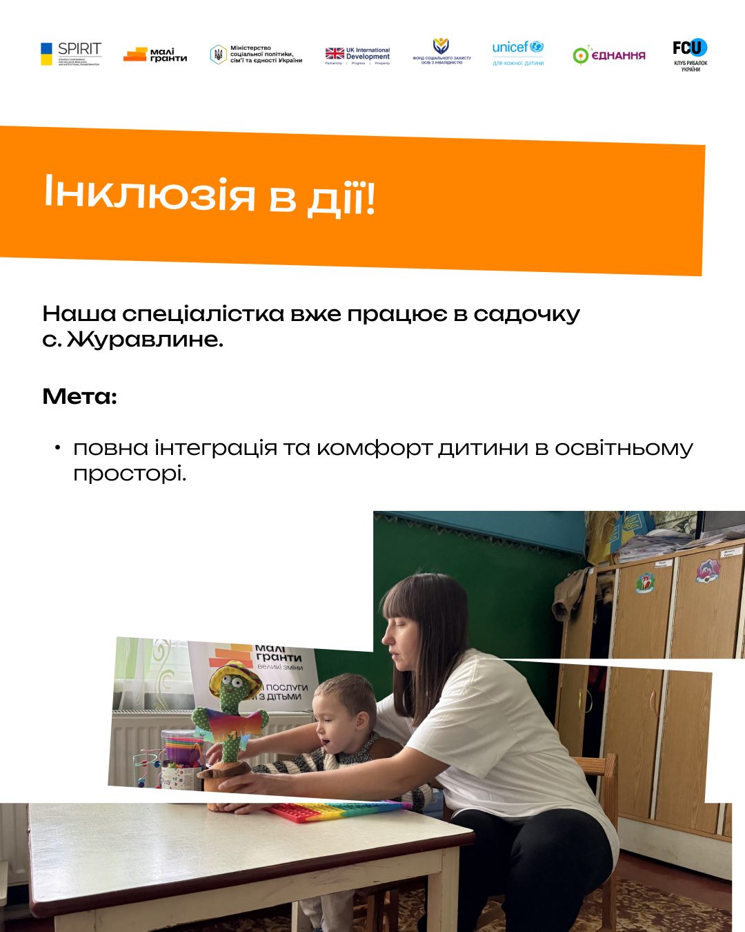 У садочку села Журавлине наш фахівець- асистент дитини, уже працює, забезпечуючи повноцінну інтеграцію дитини з інвалідністю в освітній процес.