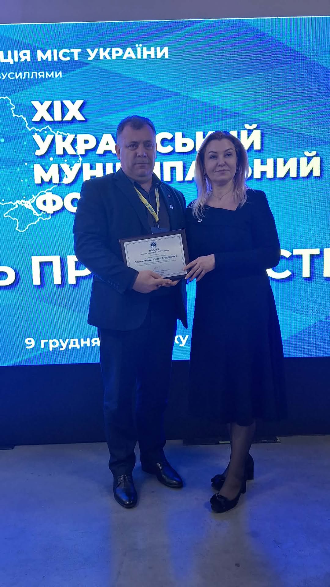 Іршавський міський голова (Іршавська міська рада є членом Асоціація міст України в Закарпатській області) Віктор Симканинець під час XIX Українського муніципального форуму, організованоuj Асоціацією міст України, який проходить у Києві 8-9 грудня 2025 року, отримав Подяку Голови Асоціації міст України.