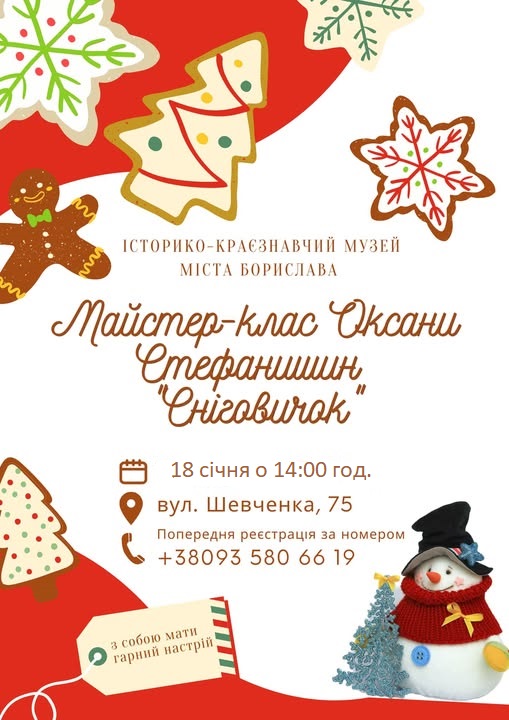 🏛️Історико-краєзнавчий музей міста Борислава запрошує на майстер-клас Оксани Стефанишин “Сніговичок”