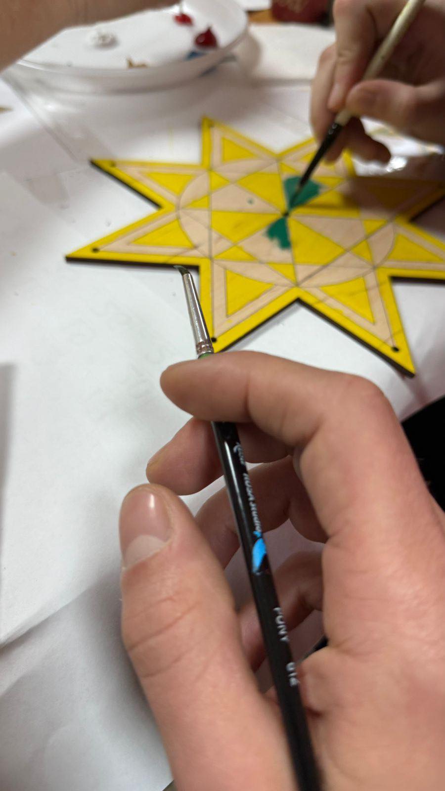 В приміщенні панувала справжня передріздвяна атмосфера: затишок, тепло та творчий настрій.🎄Під час заняття кожен мав змогу не лише навчитися працювати зі фанерою та фарбами, але й дізнатися більше про символічне значення різдвяної зірки в українських обрядах про яке розповів отець Олег ЗДРЕНИК. Тонкий аромат природних матеріалів і щирі посмішки учасників створювали справжнє свято.