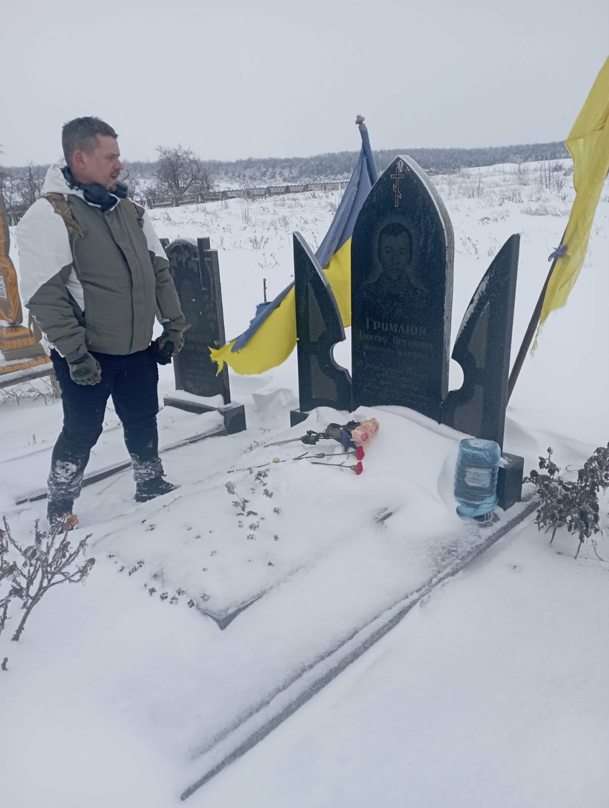 І ще, не дивлячись на перемети, сьогодні до Очиткова добрався з Києва побратим загиблого Героя, уродженця села, Діми Громлюка. Він довгий час був у полоні. І ось після того, як звільнився й підлікувався, то відразу приїхав вклонитись на могилу побратима , з яким були дуже близькі.