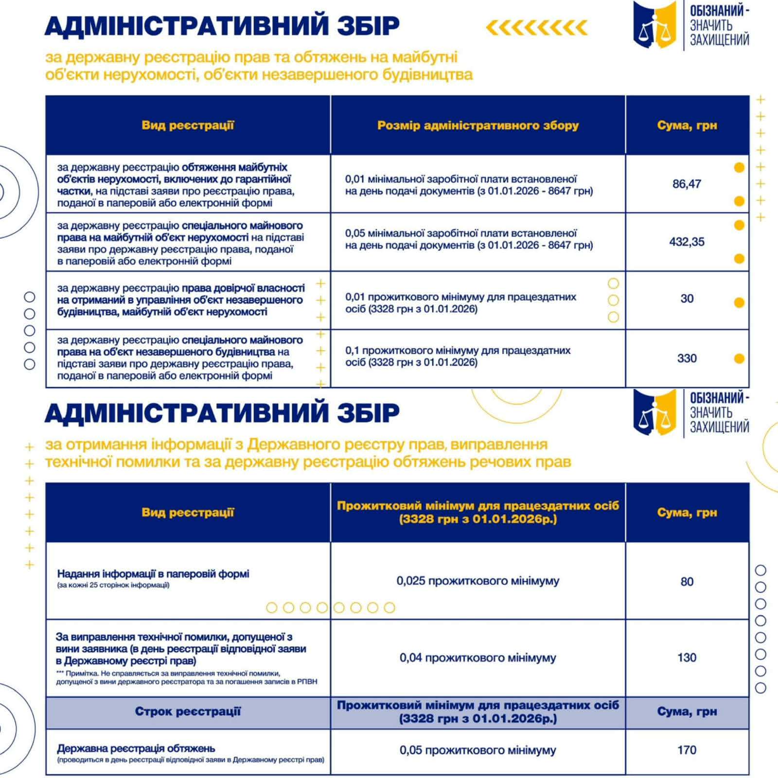 ✅ адміністративний збір справляється за одну надану послугу у сфері державної реєстрації прав;