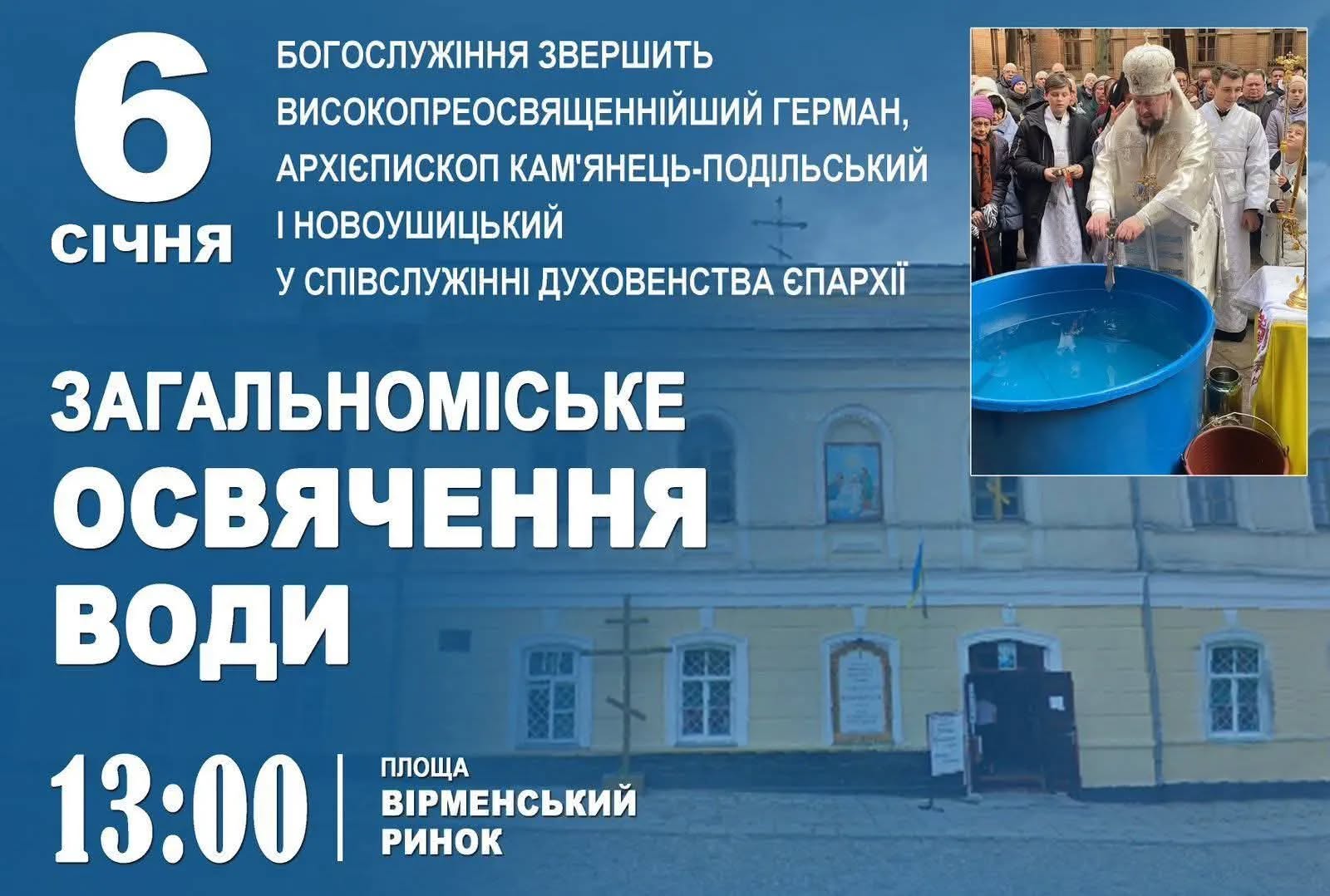 Запрошуємо кам’янчан,гостей міста та всіх бажаючих взяти участь у святковому освяченні води.