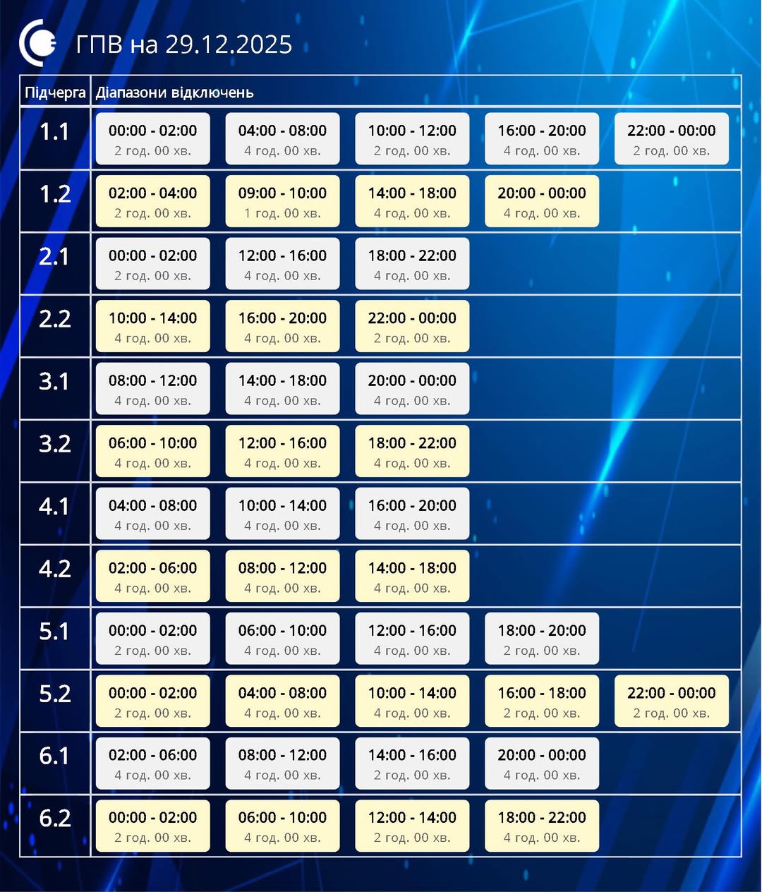 💡 АТ «Сумиобленерго» оприлюднило графіки погодинних відключень на завтра, 29 грудня – за командою НЕК «Укренерго».