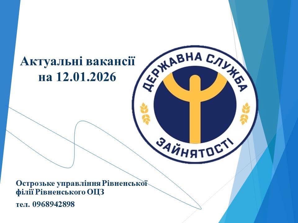 Актуальні вакансії на 12.01.2026 року по Острозькій міській територіальній грома…