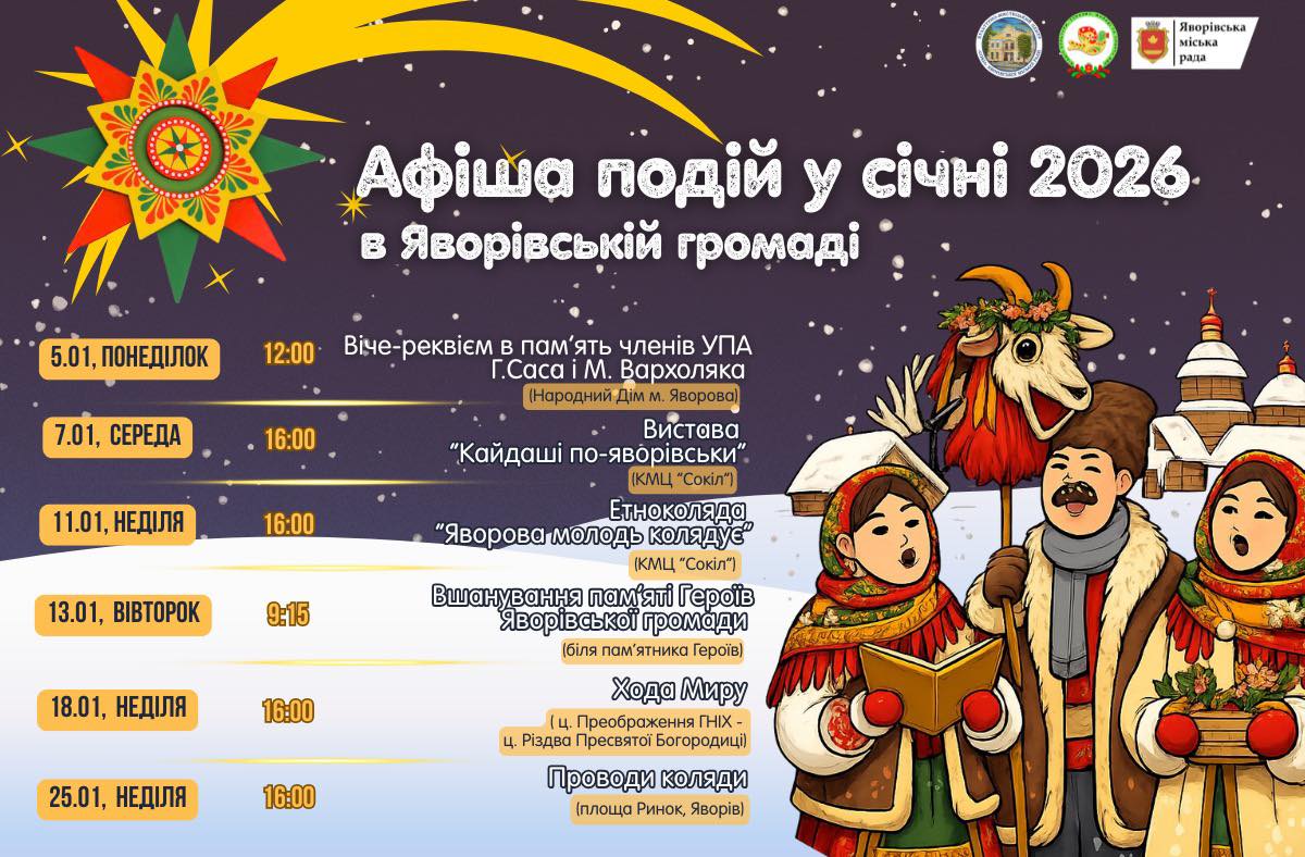📅 Афіша подій у січні 2026 року в Яворівській громаді