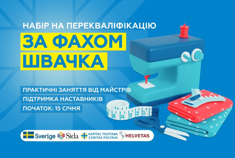 Завдяки підтримці Швеції (Sida) та Helvetas Swiss Intercooperation, відкривається реєстрація на безкоштовні курси перекваліфікації.