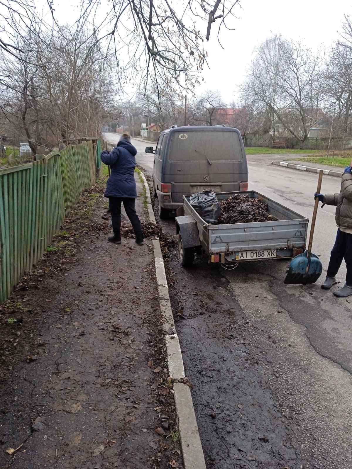 -продовжено роботи із вивезення опалого листя з узбіч центральної вулиці села.