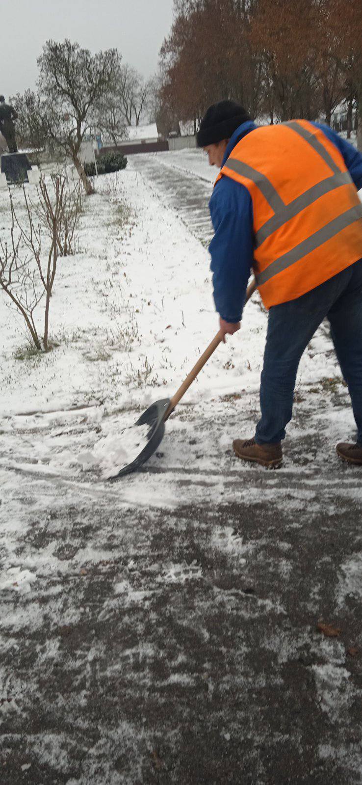-розчистка доріжок від снігу на прилеглих до адмінприміщення територіях с. Гребені.