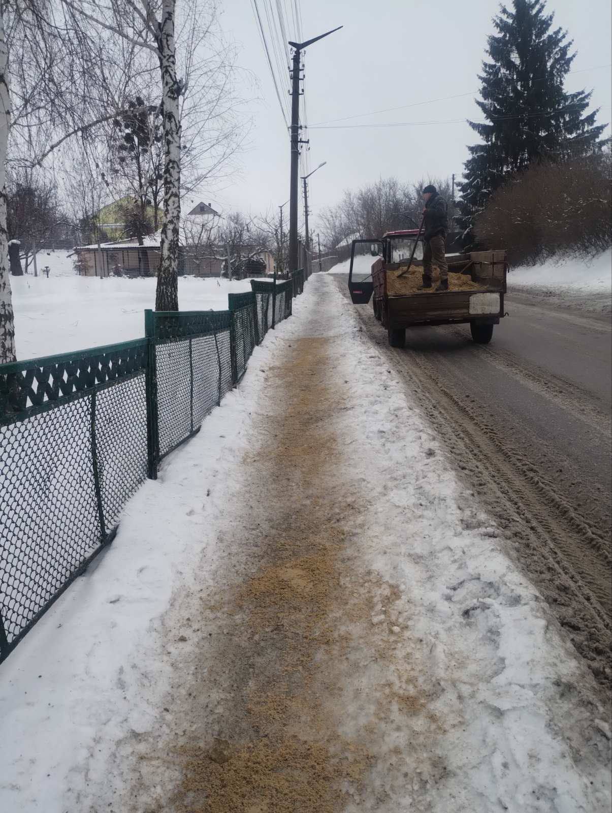 -протиожележною сумішшю просипано перехрестя вулиць Шевченка та Героїв Дніпра с. Великий Букрин.