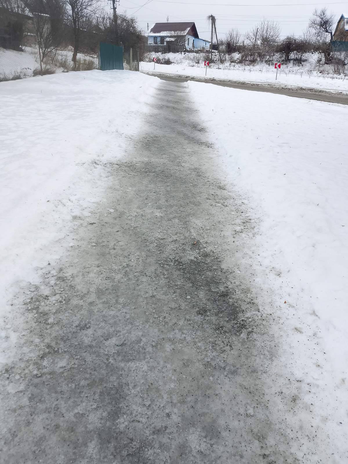 -протиожеледною сумішшю просипано спуски с. Півці;