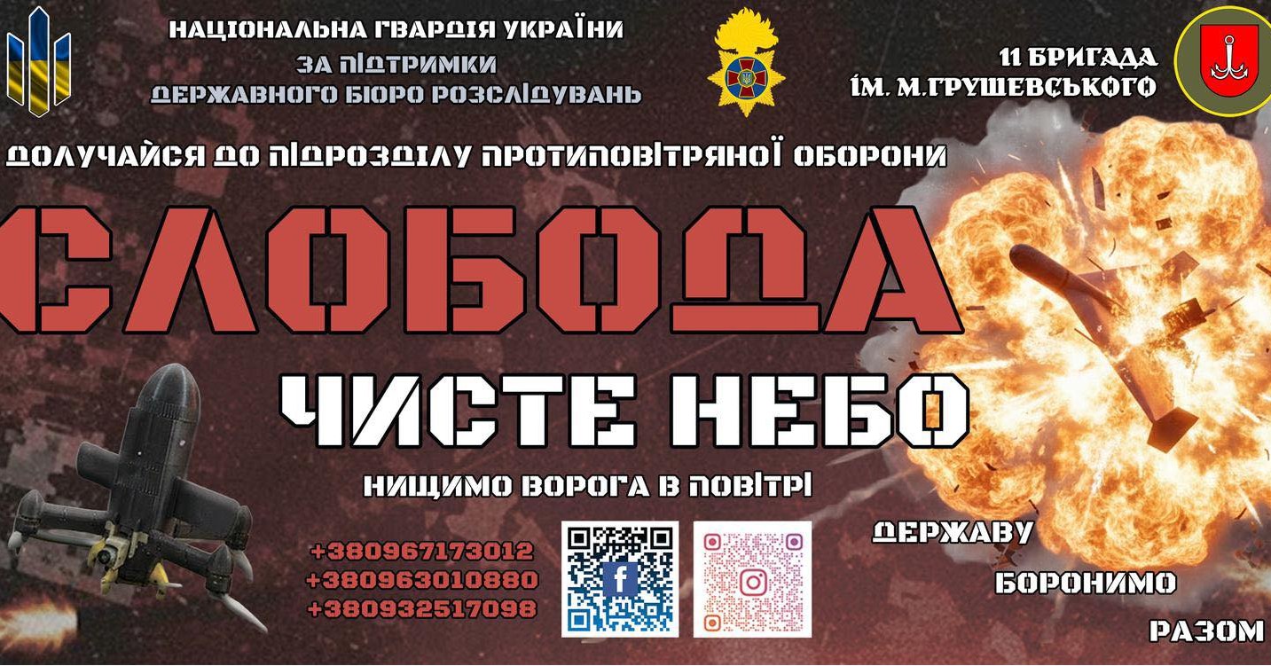 Батальйон протиповітряної оборони «Слобода» – стань на захист неба України разом з 11 бригадою імені Михайла Грушевського Національної гвардії України!